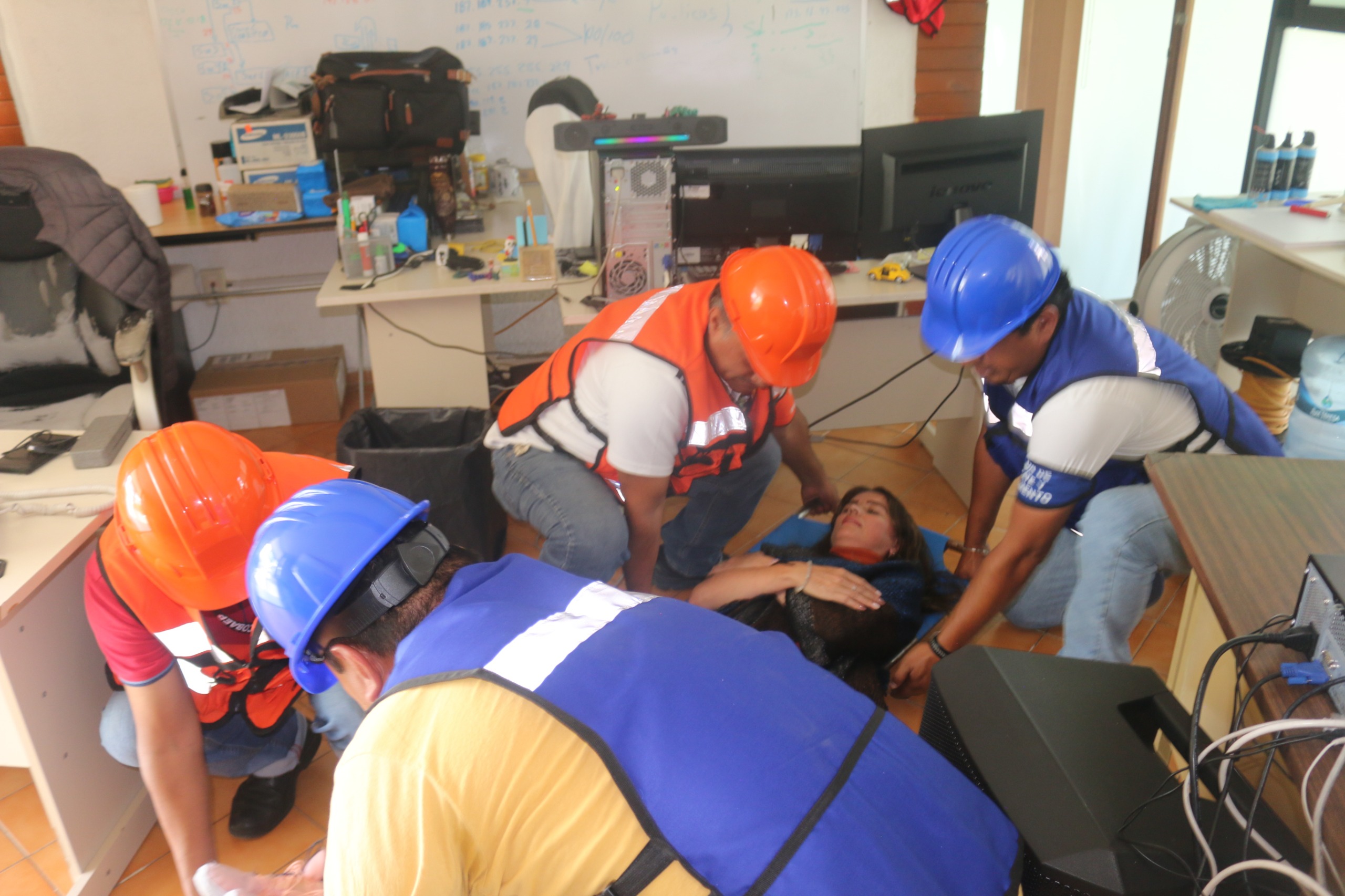 En oficinas centrales, el Comité Interno de Protección Civil y Seguridad Escolar, fue el encargado de coordinar e instruir a los trabajadores y visitantes las rutas de evacuación del inmueble. Las brigadas de búsqueda y rescate verificaron que los trabajadores estuvieran en los puntos de reunión; la de incendios atendió un conato de ignición en la zona del archivo general, mientras que, la cuadrilla para verificar heridos valoró a las supuestas víctimas, proporcionó atención médica de emergencia hasta que llegara el apoyo de personal de los servicios públicos de atención médica.
